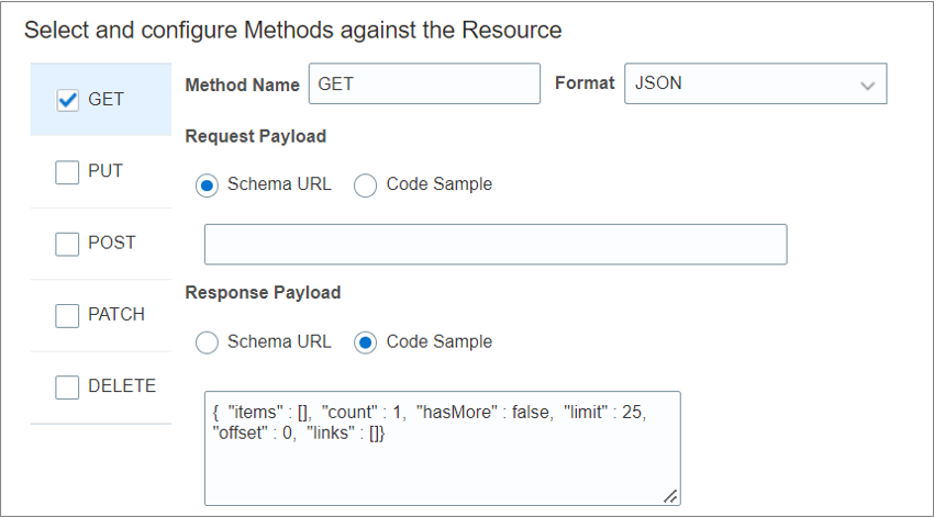 - 次に、「リソースに対してメソッドを選択および構成」セクションに情報を入力します。