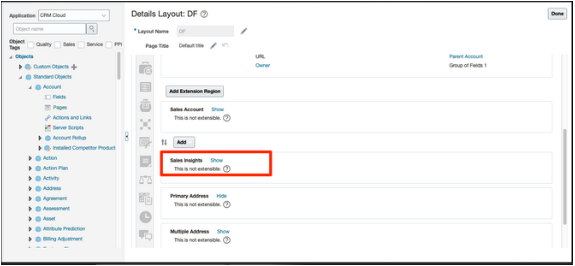 次に、カスタムのアカウント・レイアウト・ページに「営業インサイト」セクションを表示するステップを示します。 これと同様のステップに従って、カスタムの営業リードおよび商談のレイアウト・ページにも「営業インサイト」セクションを表示できます。