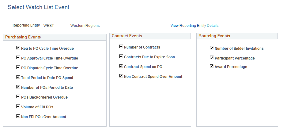 Select the events you want to monitor in the Supplier Watch List Page. |