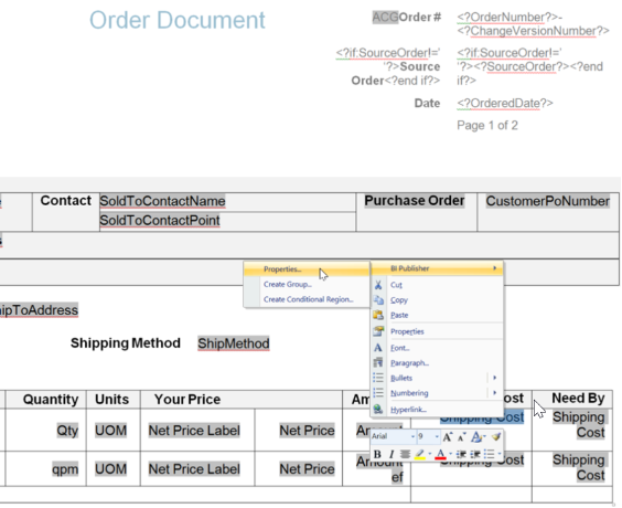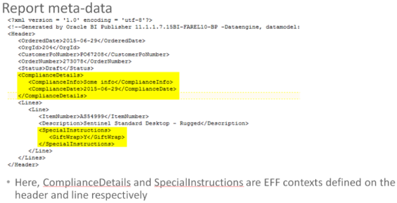 rtfファイルの例を表示するには、「Order Managementの技術リファレンス(ドキュメントID 2051639.1)」に移動し、「ペイロードとファイル」添付ファイルをダウンロードして、sales_order_report_with_extensible_flexfield.rtfを開きます。