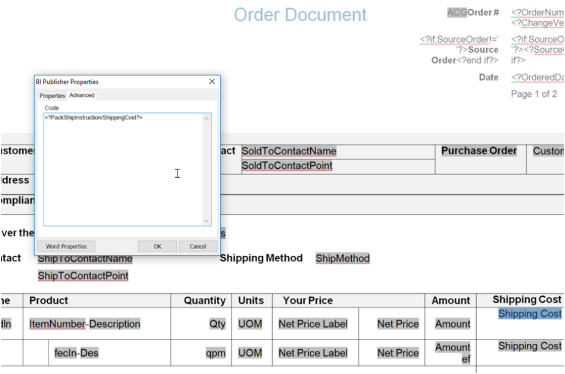 RTFテンプレートでOracle Analytics Publisherプロパティを設定します。 詳細は、Oracle Analytics Publisherのドキュメントを参照してください。