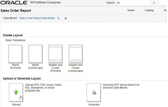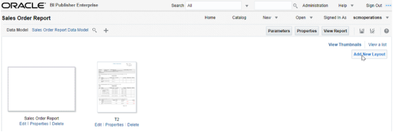 メニュー・バーの「Oracle Analytics Publisher」オプションに注意してください。