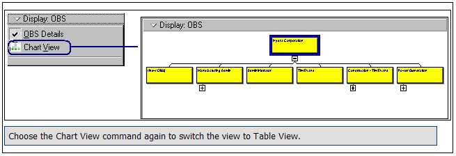 You can also view hierarchical information, such as the work breakdown structure, in table (list) or chart view (hierarchy) format.