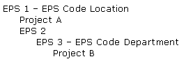 If you move a project to its parent EPS level, and the parent EPS does not have the same EPS-level activity code assigned to it, a project level activity code with the same code name and values is created, under the parent EPS. For example, if Project B is copied to the EPS 2 level, the code Department will be copied as a project level activity code in the new EPS 2 level project. All assignments will remain the same.
