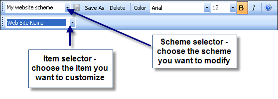 - Cliquez sur un élément de l'écran pour le sélectionner, ou choisissez un élément dans le sélecteur d'élément (voir image ci-dessous), puis personnalisez-le dans les champs en bas de la boîte de dialogue.