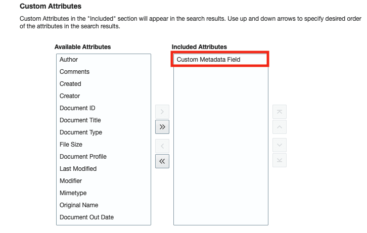 「カスタム属性」セクションでは、「組み込まれた属性」セクションに属性を移動して、検索結果に表示されるカスタム検索属性と、それらの属性の表示順序を選択できます。
