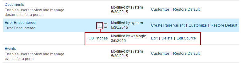システム管理者のみが、アプリケーションレベルのシステム・ページに対してページ・バリアントを作成できます。ページ・バリアントがサポート対象のデバイス・グループに作成されていない場合、ベース・ページにはそのデバイス・グループに属するデバイスのみが表示されます。