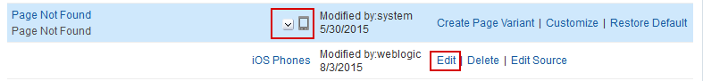 デバイス・グループ用システム・ページのバリアントをカスタマイズするには、システム・ページのバリアントのアイコンを開いて、カスタマイズするデバイス・グループの「編集」をクリックします。