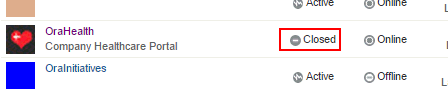 ポータルは、デフォルトでアクティブです。アクティブに使用されなくなったポータルをクローズできます。ポータルをクローズすると、そのコンテンツはアーカイブされます。ポータルをクローズすると、そのポータルはすべてのユーザーの「ポータル」メニューから削除され、ユーザーが「表示」リストから「クローズ」を選択する場合にのみホーム・ポータルの「ポータル」ページに表示されます。クローズしたポータルのコンテンツは、クローズ後もアクセスしたり検索して参照できます。ポータル・メンバーがそのポータルで引き続き作業するには、クローズしたポータルを表示するか、プリティURL (http://host:port/webcenter/portal/portalName)でアクセスします。
