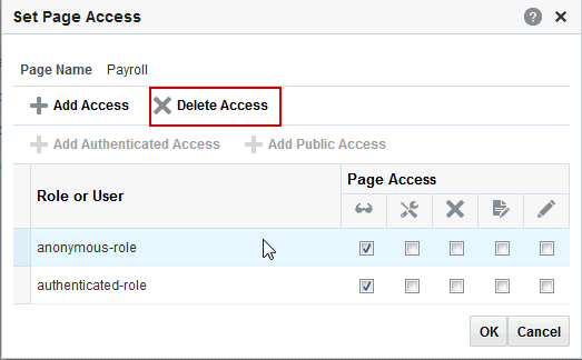 「カスタム・ビジネス・ロール・ページのアクセス権限の設定」のステップに従い、「ページのアクセス権限の設定」ダイアログを開きます。
