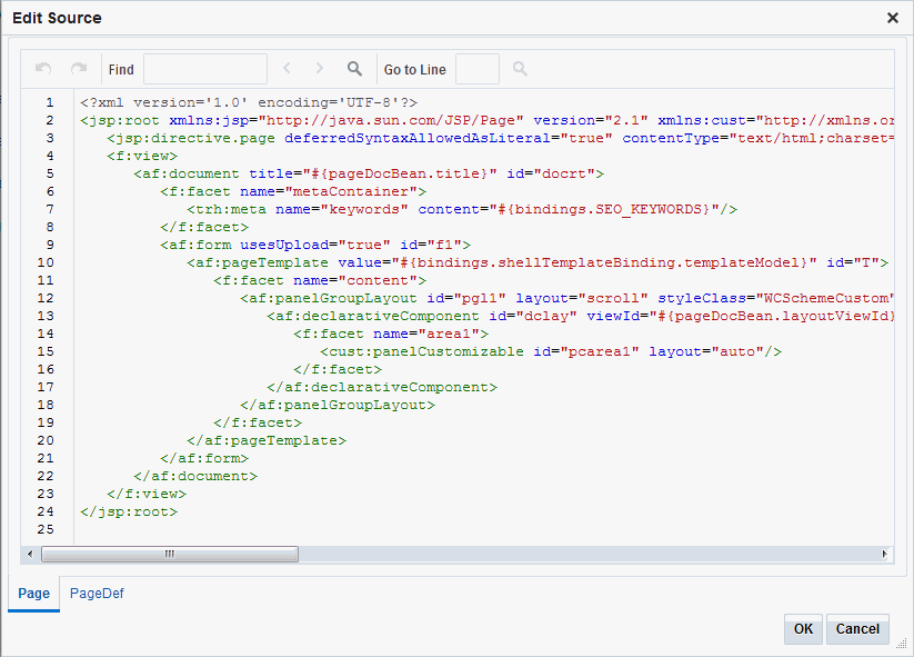 ページのソースの編集の詳細は、『Oracle WebCenter Portalでのポータルの構築』のページのソース・コードの表示および変更を参照してください。