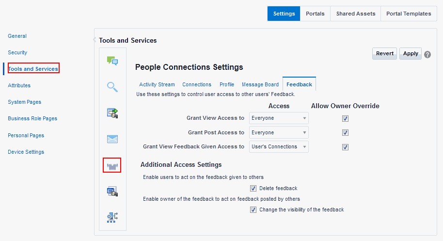 該当するアクティビティの表示を許可されたユーザーと共有(『Oracle WebCenter Portalでのポータルの使用』のフィードバックのプリファレンスの設定に関する項を参照してください)。 |