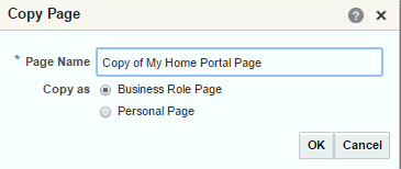 システム管理者は、Oracle WebCenter Portalの任意のページをコピーする権限があります。これには、他のユーザーが作成した個人用ページのコピーも含まれます。管理者として個人用ページをコピーするとき、これをビジネス・ロール・ページとして保存して他のユーザーにプッシュしたり、ホーム・ポータルの独自のビューに個人用ページとして保存することができます。