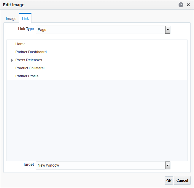 ページ・ブラウザで、イメージがクリックされたときに表示するポータル・ページを選択します(図14-15)。