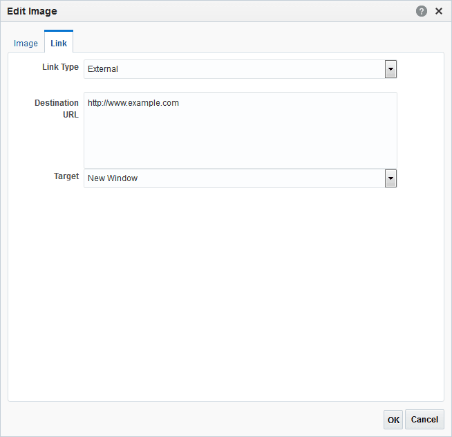 「イメージの編集」ダイアログの「リンク」タブで、「リンク・タイプ」リストから次のように選択します。