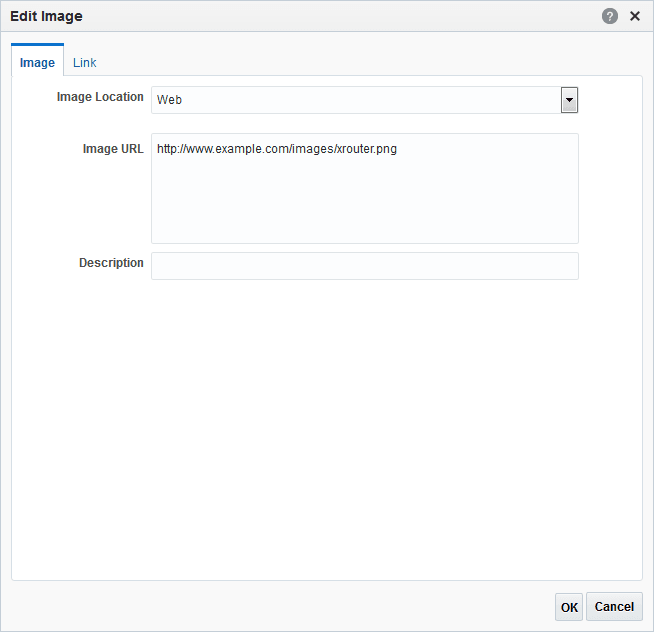 ノート: コンテンツ・リポジトリからのイメージを使用する場合は、そのイメージがリポジトリにすでに存在する必要があります。「イメージの編集」ダイアログ内からリポジトリにイメージをアップロードすることはできません。