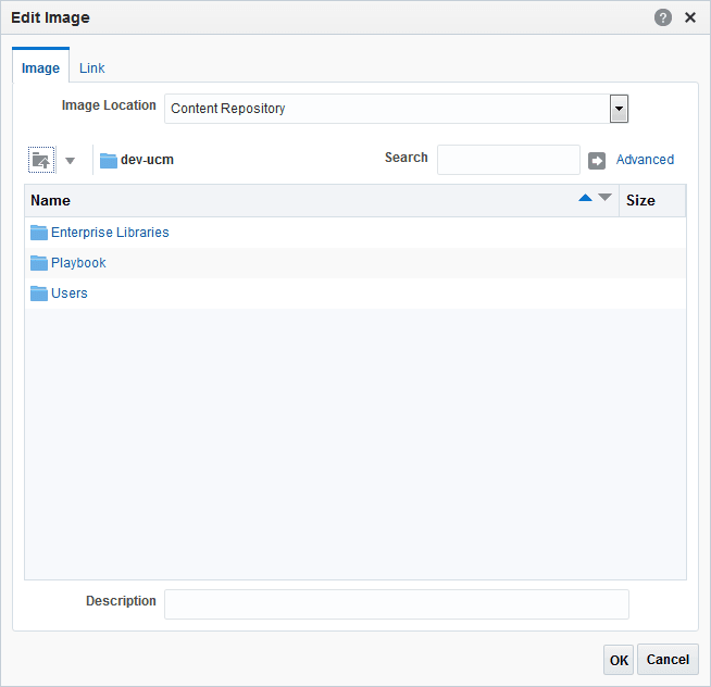 コンテンツ・リポジトリ: WebCenter Content Serverリポジトリからイメージを選択します。