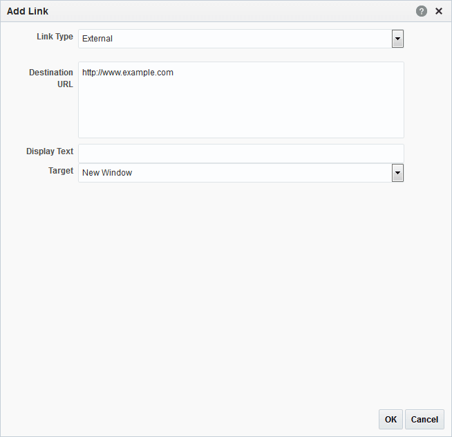 「リンクの追加」ダイアログで、「リンク・タイプ」ドロップダウン・リストから次を選択します。