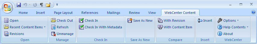 図15-12 Microsoft Word 2007の「WebCenter Content」リボン
