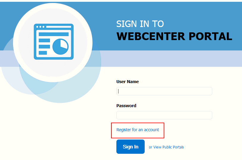 WebCenter Portalユーザーとして自己登録するには: