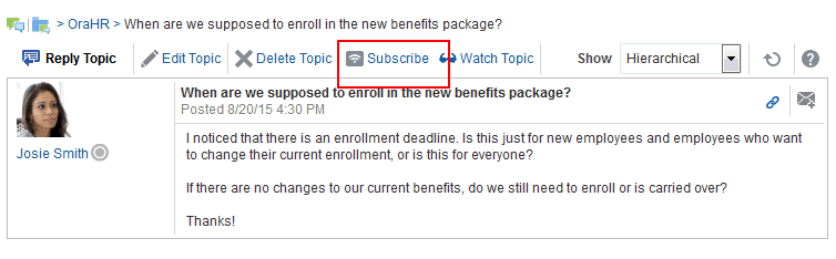 図18-10 ディスカッション・トピックの「サブスクライブ」リンク