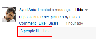 メッセージ・ボードのメッセージ、アクティビティ・ストリームのエントリ(ホーム・ポータルのアクティビティ・ストリームでアップロードしたファイルなど)、ブログ投稿およびWikiページに、LIKE登録していることを表示できます。