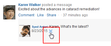 投稿したテキストまたはリンクの横に削除アイコンがあります(図12-18)。自分のメッセージを削除するには、「削除」アイコンをクリックします。