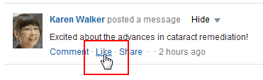 ヒント: ユーザー自身や他のユーザーが、メッセージまたはアクティビティをLIKE登録できるかどうかは、システム管理者がこれらの機能のLIKE登録を有効にしているかどうかによって決まります。