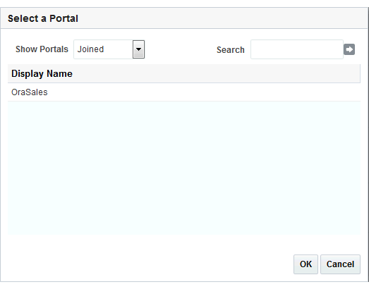 「ポータル」を選択すると、「ポータルの選択」ダイアログが開きます。ここで、ポータルのホーム・ページ上でアイテムを共有するポータルを選択できます。