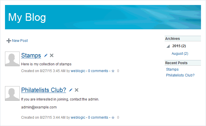 新規ブログ投稿は、そのブログ・ページの最上位エントリとして表示されます(図17-3)。
