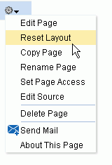 「ページのパーソナライズ」ページで、目的のページの「アクション」アイコンをクリックして「レイアウトのリセット」を選択し(図6-7)、「レイアウトのリセット」ダイアログを開きます。