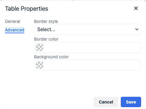 表16-3 リッチ・テキスト・エディタ: 詳細な「表プロパティ」