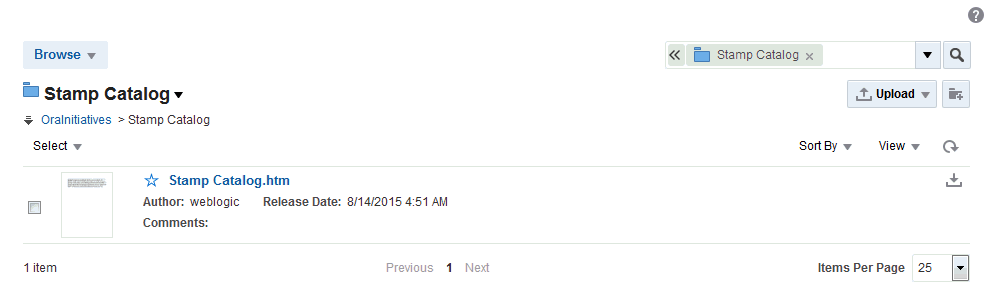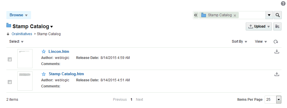 Lincoln)は、デフォルトのWikiページ・ドキュメント(Stamp Catalog)として作成されたWikiドキュメントとともに、その親Wikiフォルダ(Stamp Catalog)にドキュメントとして保存されます(図16-5)。図16-5 Wikiページ内に作成されたWikiドキュメント