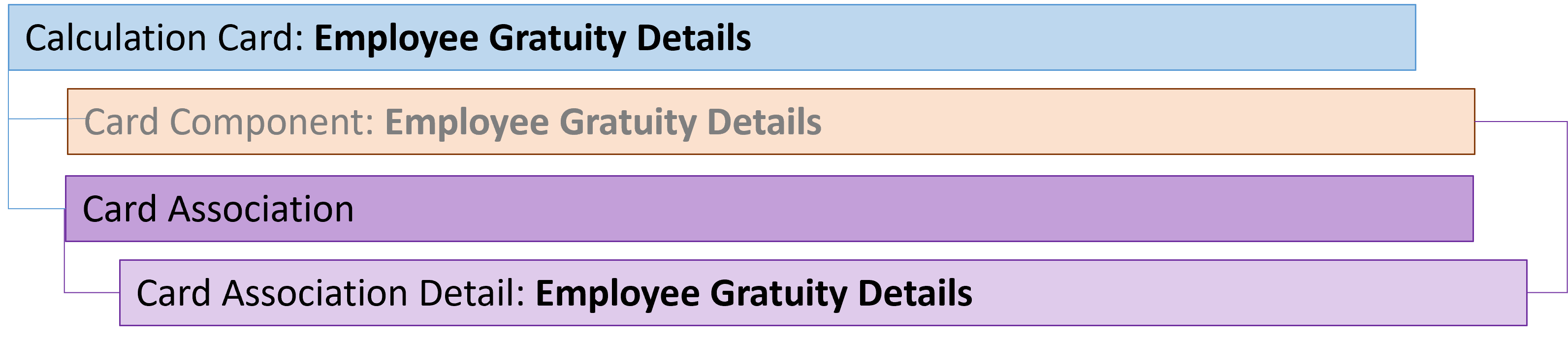 関連付けられる税レポート・ユニットはカード関連付けで定義されます。 カード関連付け詳細は、従業員祝儀金詳細カード・コンポーネントと従業員アサイメントを関連付けます。