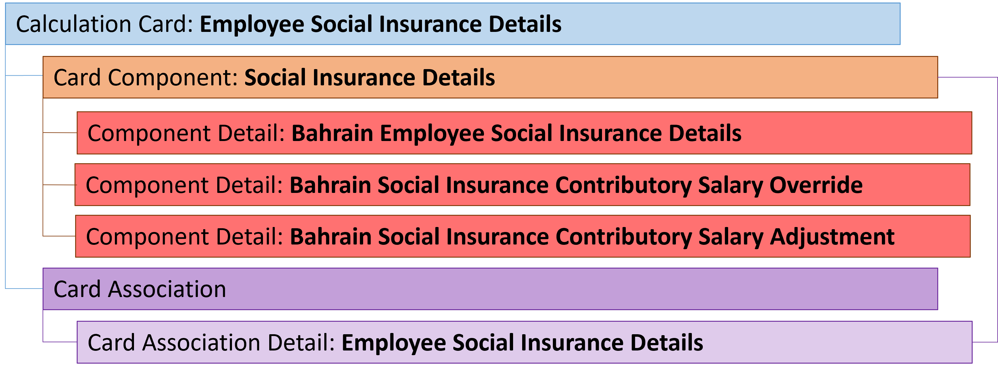 従業員社会保険に適用される計算カード・コンポーネントの階層を次の図に示します: