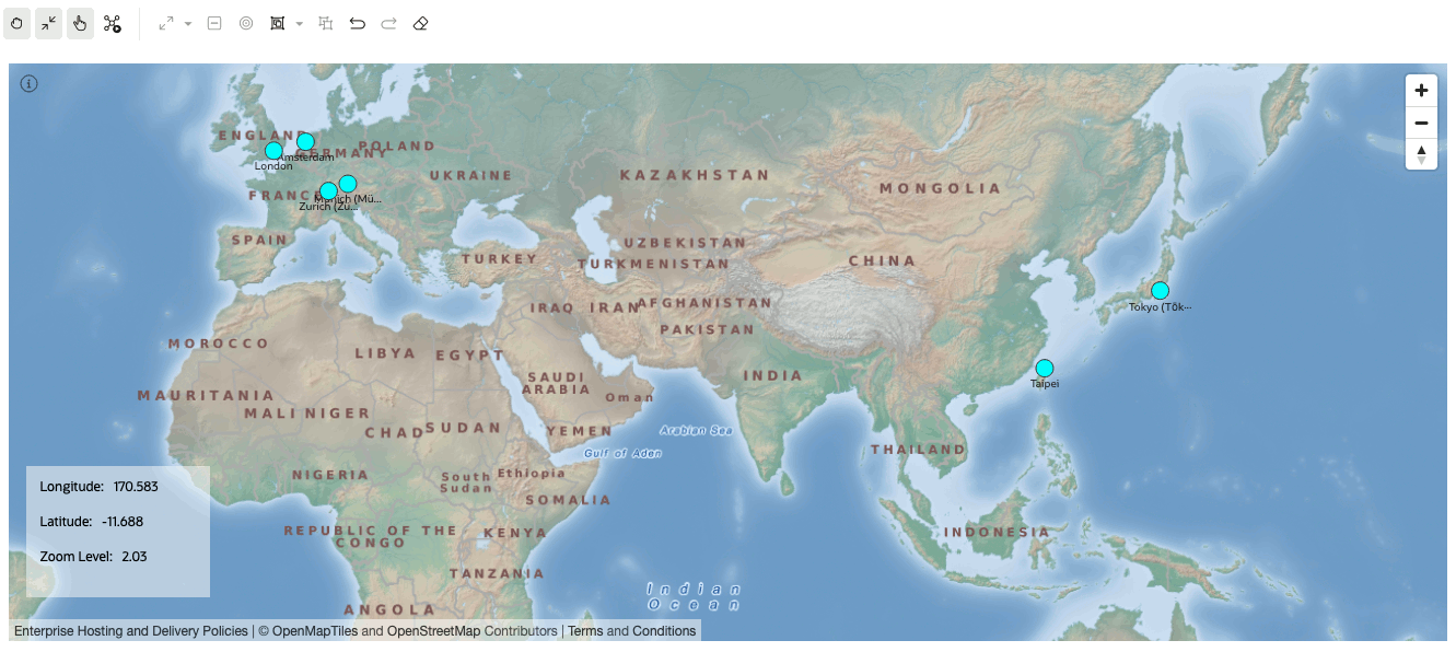 : Displays an info box in the visualizer (see image above) that shows the 'Latitude' and 'Longitude' of the mouse position and the 'Zoom Level' of the map. Possible values are true or false. -