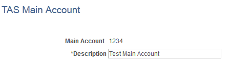 Use the TAS Main Account page (GVT_TAS_MAIN_ACCT) to enter the Main Account code and description.