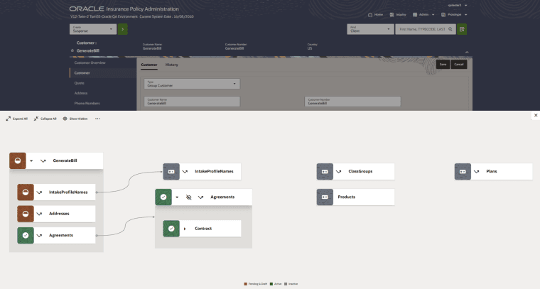 The Oracle Insurance Group Policy Administration application now includes a new feature called Group Customer Navigation. This feature visually presents a graphical overview of the elements of a group customer, depicts their relationships, indicates the setup status of each element, and offers users an intuitive interface to navigate and access group customer information.