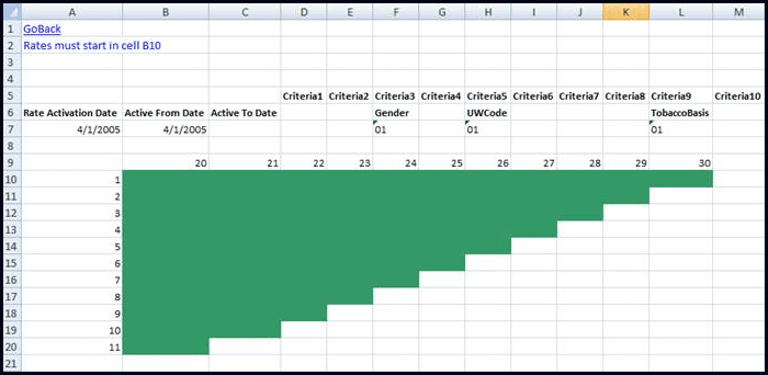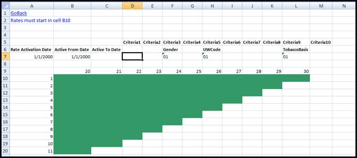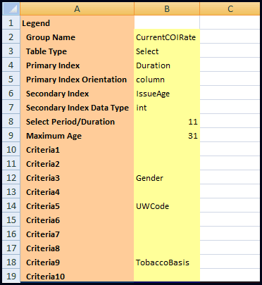 - Criteria1 to Criteria10: The criteria names for each of the criterion along with the criteria values for the specific rate set.
