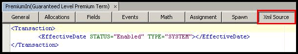 For Benefit Split, this rule should allow for Benefit fund GUID/amount collection. A target benefit split type code should be specified. The rule should allow a “Copy Source” operation that will copy a specified segment’s activity benefit split based on type code. This feature only applies if the COPYSOURCE attribute of the Segment parent element is set to “Yes”. If no source benefit split record exists, then no error is given and no benefit split record will be created for the created policy segment.