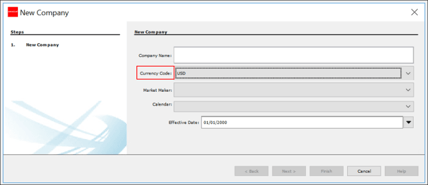 From the Main Explorer, right-click on a Company and select Edit Company. When the company information opens in the Configuration Area, change the currency code and save the update.