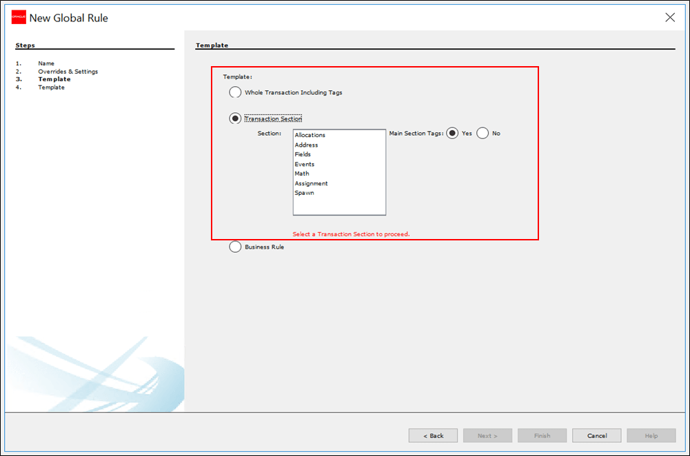 Select the radio button next to Transaction Section.