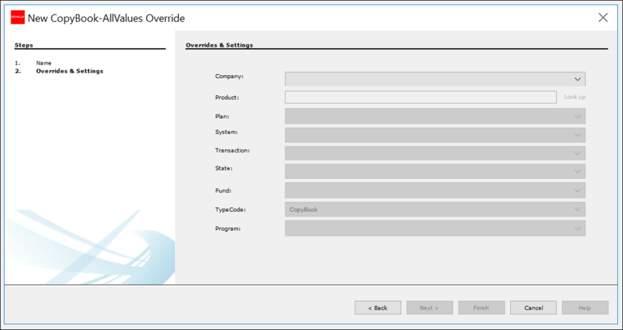 Step Two of the CopyBook Override Wizard