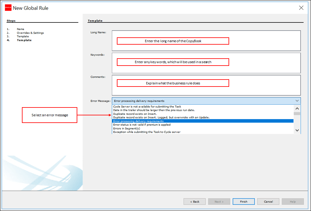 Fill out the template information and select Finish.