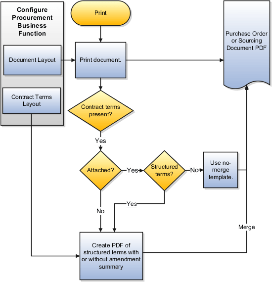 構造化条件を含む購買文書を印刷する場合、Oracle Procurementでは2つのレイアウト・テンプレートが使用されます。