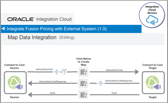 Integration Cloud Serviceを使用して、価格設定アルゴリズムから原価計算サービスにコールをルーティングします。