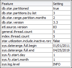 The table shows information on the ETL parameter configuration for the Primavera Data Warehouse database.