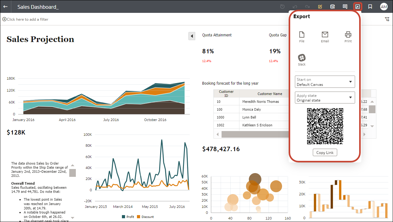 Os administradores podem configurar um canal do Slack no Oracle Analytics, de modo que os autores de conteúdo possam compartilhar suas visualizações de dados no aplicativo Slack de sua organização.