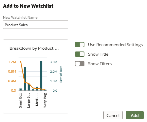 A opção Adicionar à Lista de Controle está disponível para todos que usam Insights Contextuais. Você não precisa de permissões ou definições de pasta de trabalho especiais para usar esse recurso.
