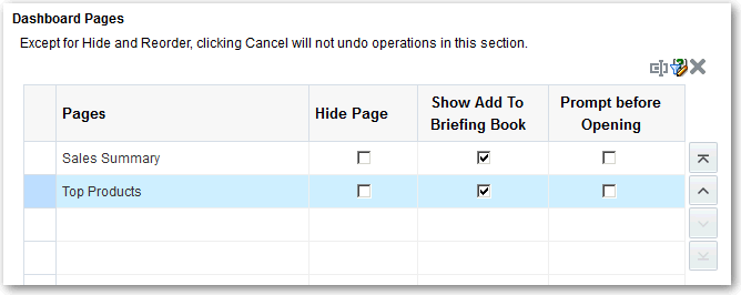 Use as propriedades do painel de controle para configurar o estilo e o comportamento de painéis de controle e páginas. Por exemplo, talvez você precise especificar se os membros da sua equipe podem exportar, atualizar ou imprimir páginas em um painel de controle.